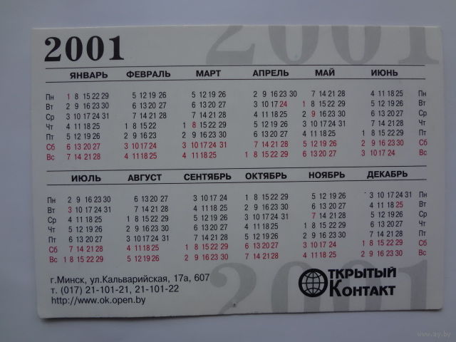 Календарик 2001 г. Интернет-магазины. Есть всё, всегда, с доставкой! Просто щелкни.