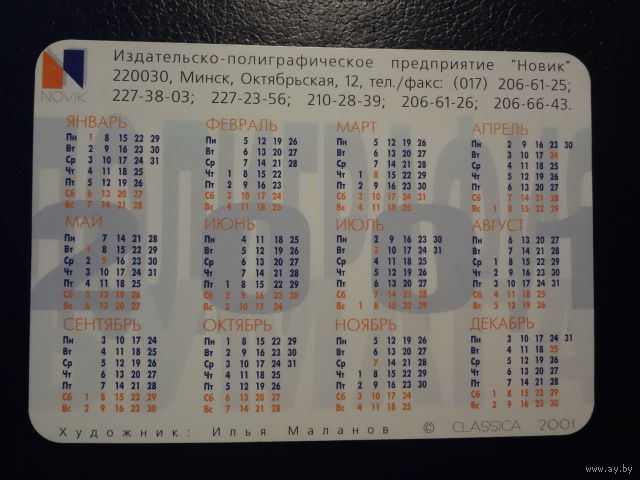 Календарик 2001 г. ИПП "Новик". Не купить!