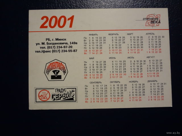 Календарик 2001 г. Мы принесем в Ваш дом свет, тепло и уют!