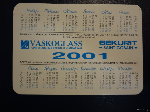 Календарик 2001 г. Оригинальные стекла к иномаркам.