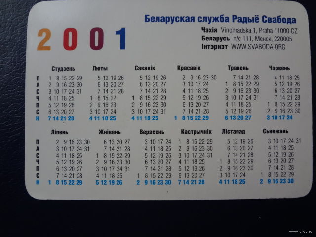 Календарик 2001 г. Радыё Свабода.