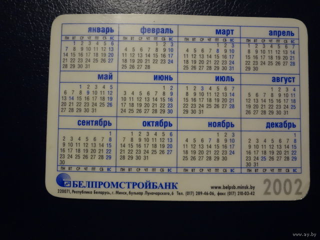 Календарик 2002 г. Белпромстройбанк.