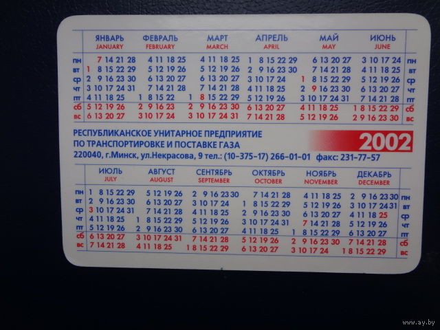 Календарик 2002 г. Белтрансгаз.