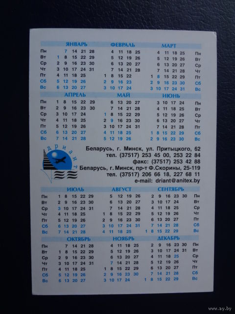 Календарик 2002 г. Дриант. Египет.