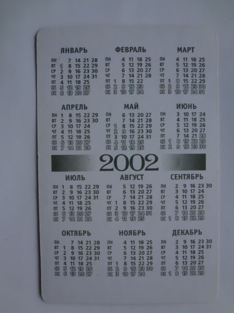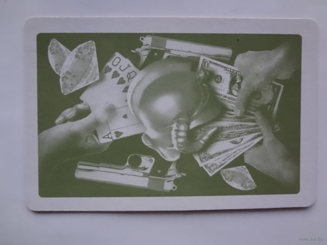 Календарик 2002 г. Карты, деньги, пистолеты ...
