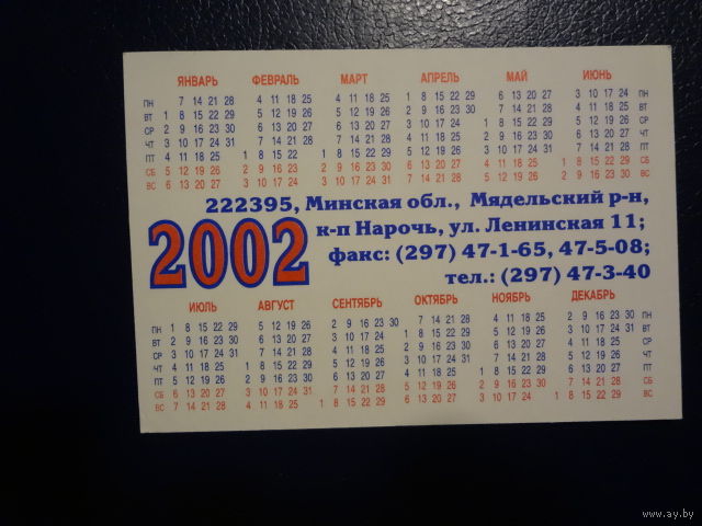 Календарик 2002 г. Национальный парк Нарочанский. Озеро в лесу.