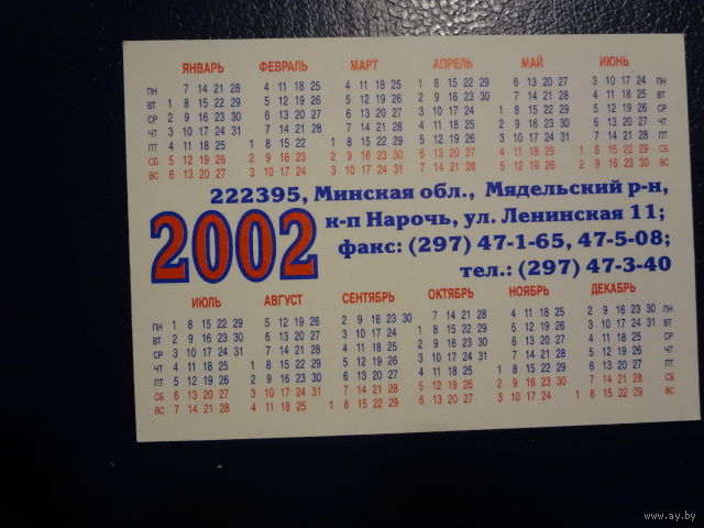 Календарик 2002 г. Национальный парк Нарочанский. Вид на озеро.