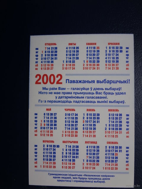 Календарик 2002 г. Нородны кантроль.