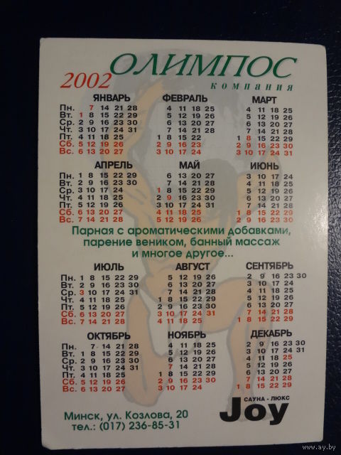 Календарик 2002 г. Олимпос. Парная с ароматическими добавками.