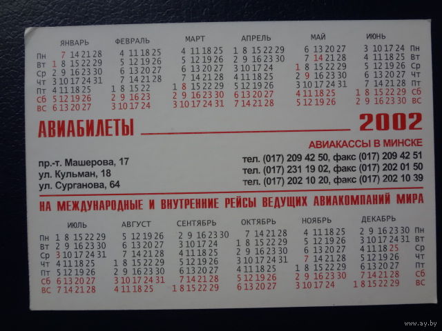 Календарик 2002 г. Sakub. Летать можно и так... но удобнее на самолете.