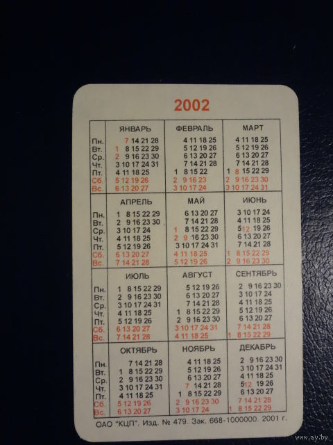 Календарик 2002 г. Санкт-Петербург.. Адмиралтейство.