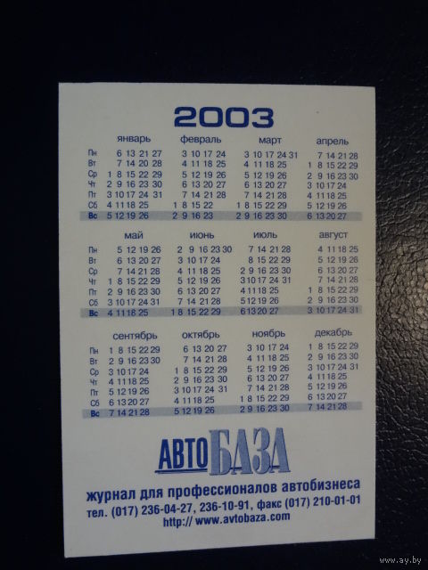 Календарик 2003 г. Автобаза. Журнал.