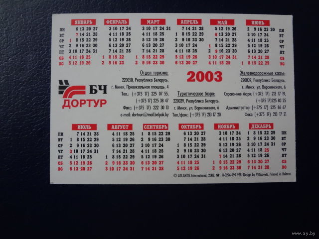 Календарик 2003 г. БЧ Дортур.