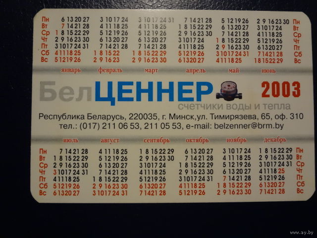 Календарик 2003 г. Бел Ценнер считает каждую каплю!