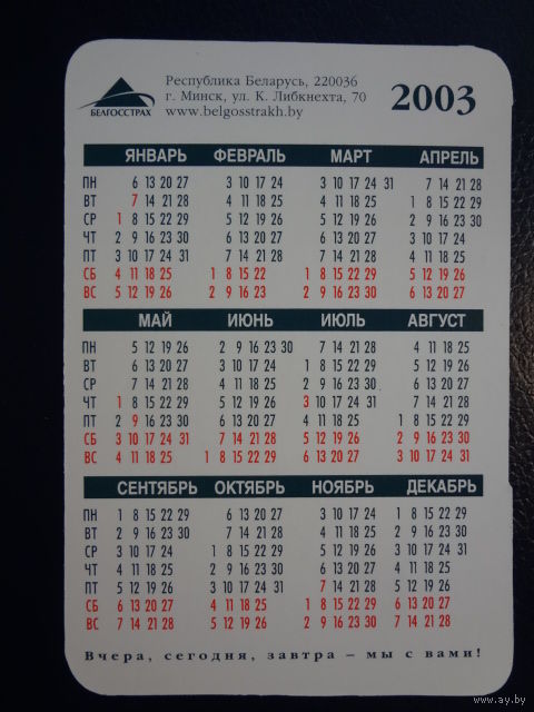 Календарик 2003 г. Белгосстрах. Разлив реки.
