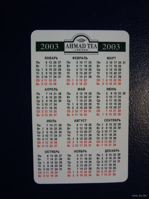 Календарик 2003 г. Чай Ахмад - Ваш Безупречный Вкус.