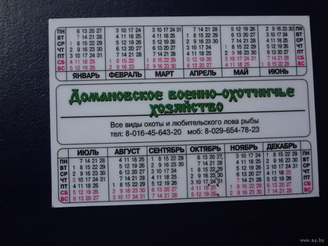 Календарик 2003 г. Домановское военно-охотничье хозяйство. (Ивацевичский р-он).