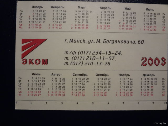 Календарик 2003 г. Двери металлические, шкафы, сейфы.
