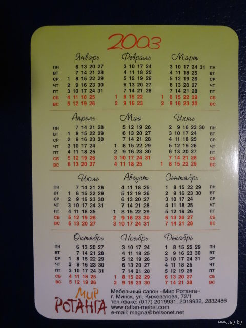 Календарик 2003 г. Экзотическая мебель из ротанга.