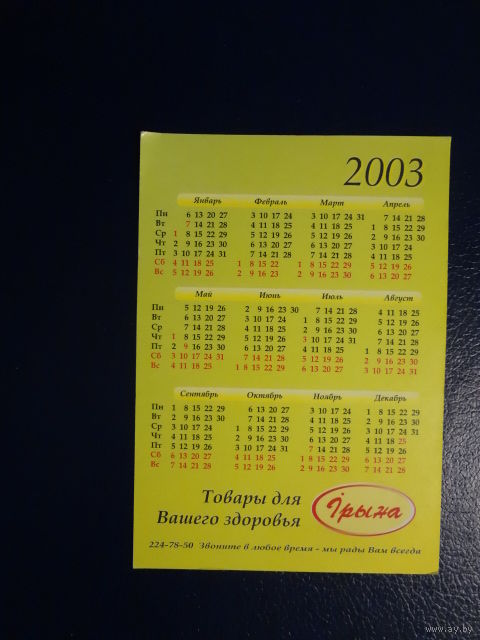 Календарик 2003 г. Ірына. Оздоровительная косметика.