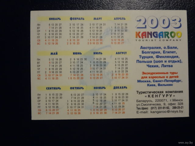 Календарик 2003 г. Kangaroo. Нам хорошо вместе!