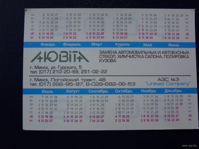 Календарик 2003 г. Лювіта. Дом автомобильного стекла.