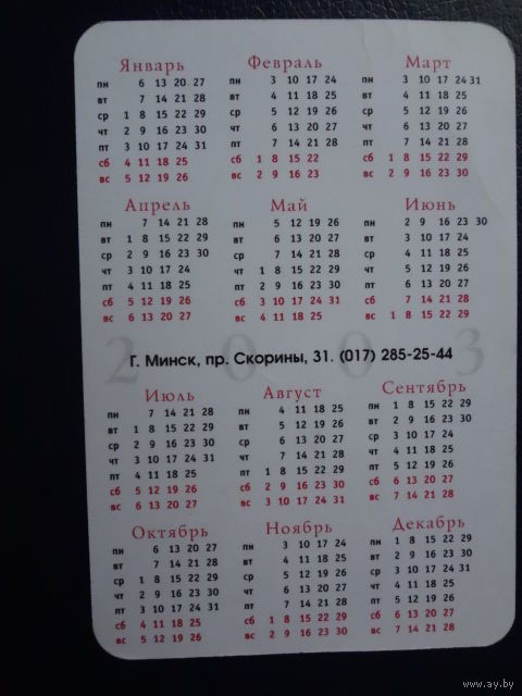 Календарик 2003 г. Магазин Мир бильярда.