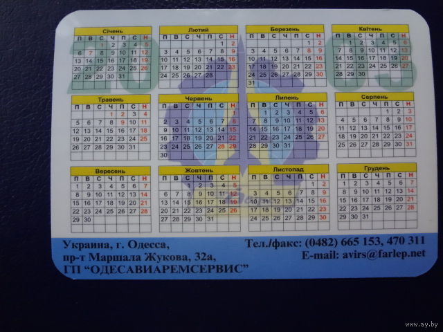 Календарик 2003 г. Одесавиаремсервис. (укр. яз.)