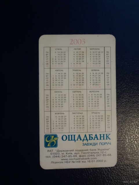 Календарик 2003 г. Ощадбанк (укр. яз.).