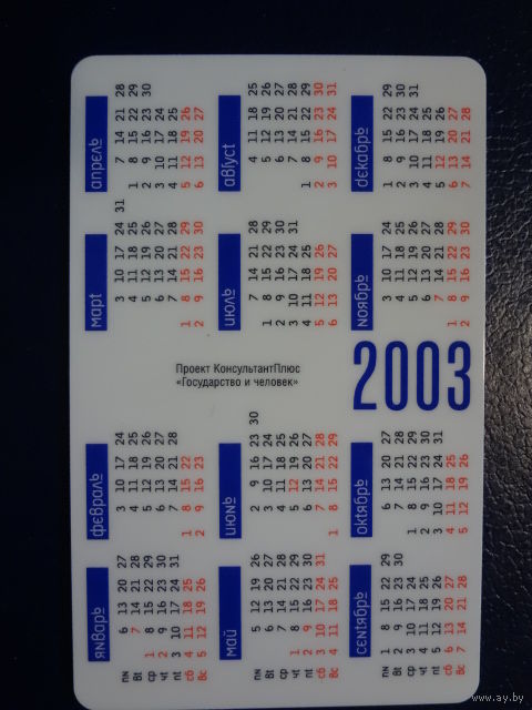 Календарик 2003 г. Проект КонсультантПлюс Государство и человек.