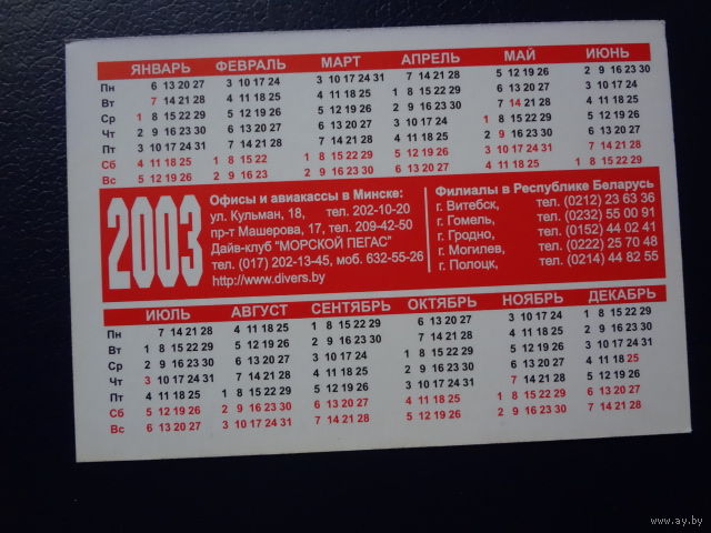 Календарик 2003 г. Sakub. Нас знают в Египте.