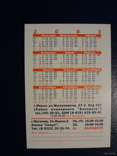 Календарик 2003 г. Салон свадебной и вечерней моды Триумф.