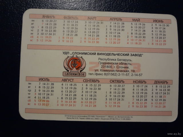 Календарик 2003 г. Слонимский винодельческий завод. (2).