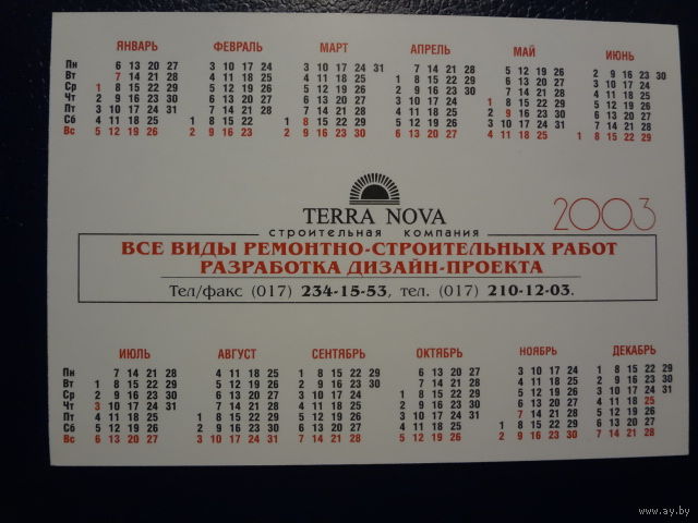 Календарик 2003 г. Строительная компания TERRA NOVA.