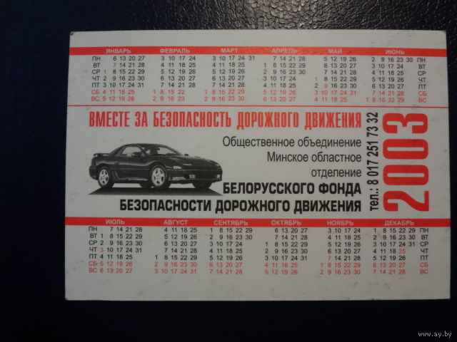 Календарик 2003 г. Вместе за безопасность дорожного движения.