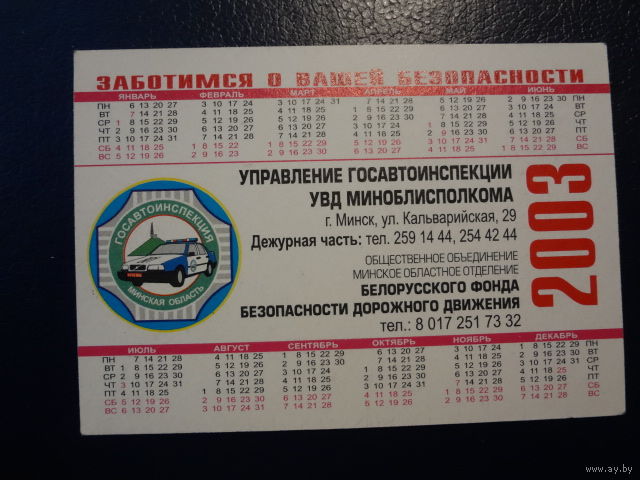 Календарик 2003 г. Водитель! Помни, где-то переходит дорогу и твой ребенок.