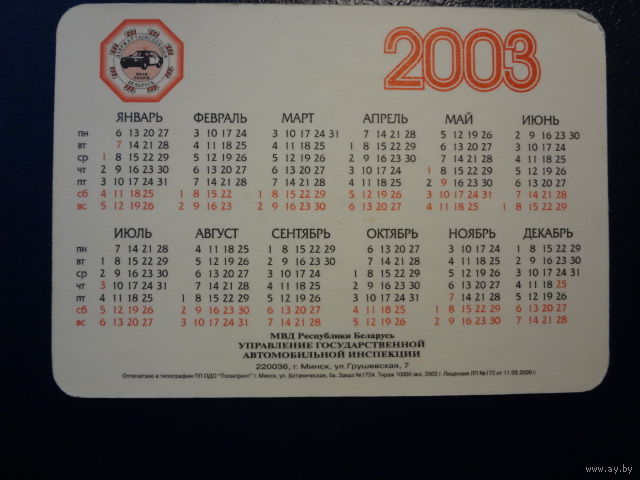 Календарик 2003 г. Водитель, помни, тебя ждут дома.