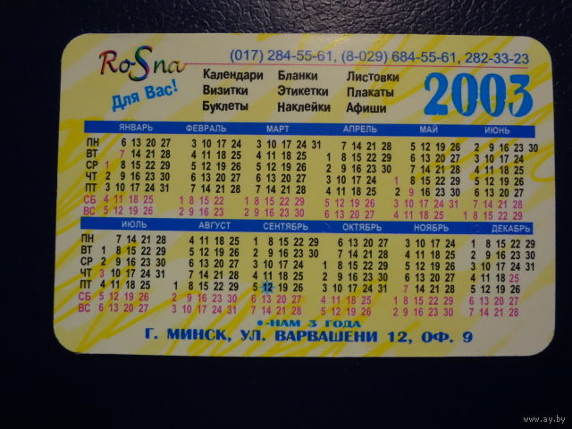 Календарик 2003 г. Вы думаете.. Мы делаем!..
