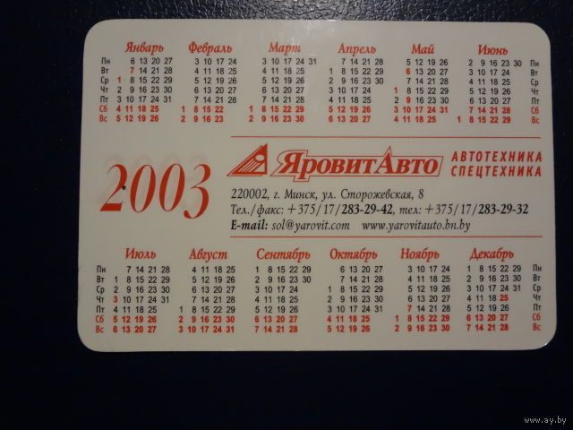 Календарик 2003 г. ЯровитАвто. Волшебство еще случается..