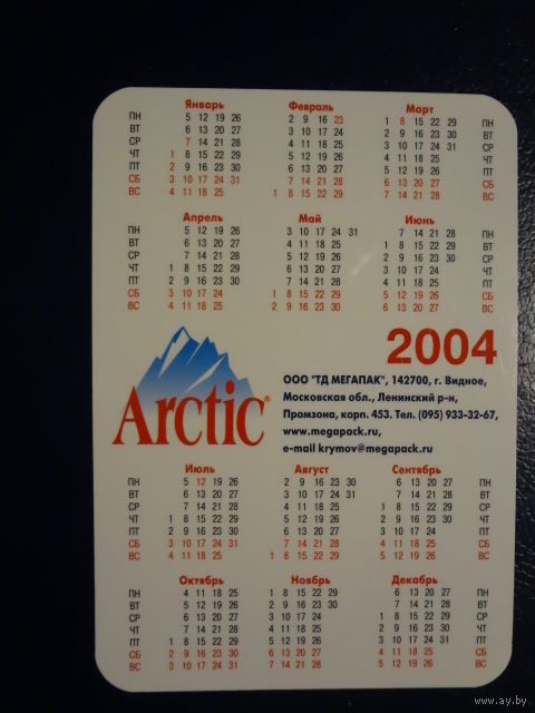 Календарик 2004 г. Arctic. Твой день - твоя вода.
