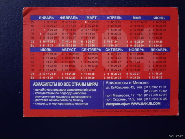 Календарик 2004 г. Авиабилеты во все страны мира!