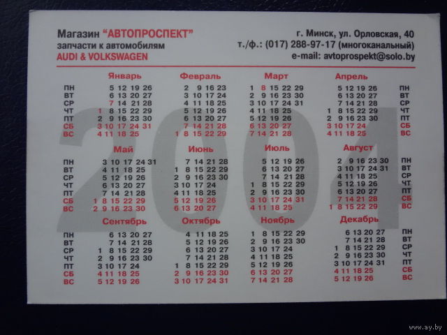 Календарик 2004 г. Автопроспект.