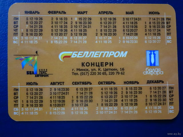 Календарик 2004 г. Беллегпром.