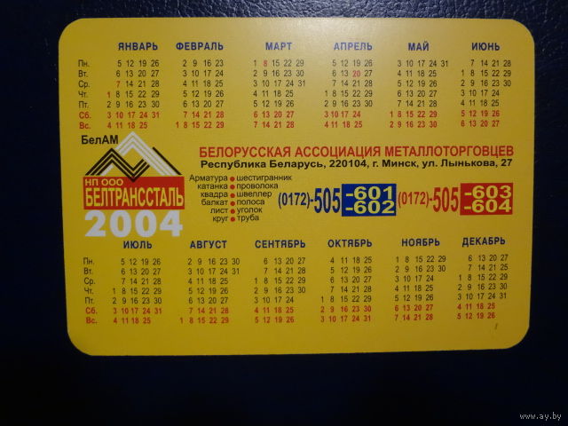 Календарик 2004 г. Белорусская ассоциация металлоторговцев. Симфония Металла.