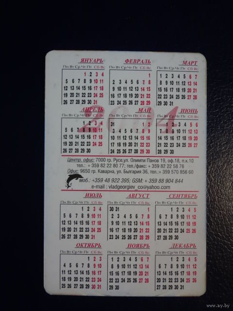 Календарик 2004 г. Болгарское туристическое агентство (бол. яз.).