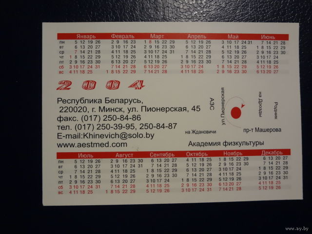 Календарик 2004 г. Центр эстетической медицины.