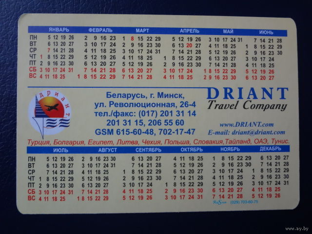 Календарик 2004 г. Дриант. Болгария.