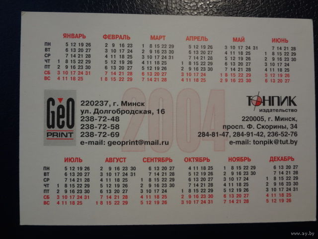 Календарик 2004 г. Экзаменационные билеты для водителей.