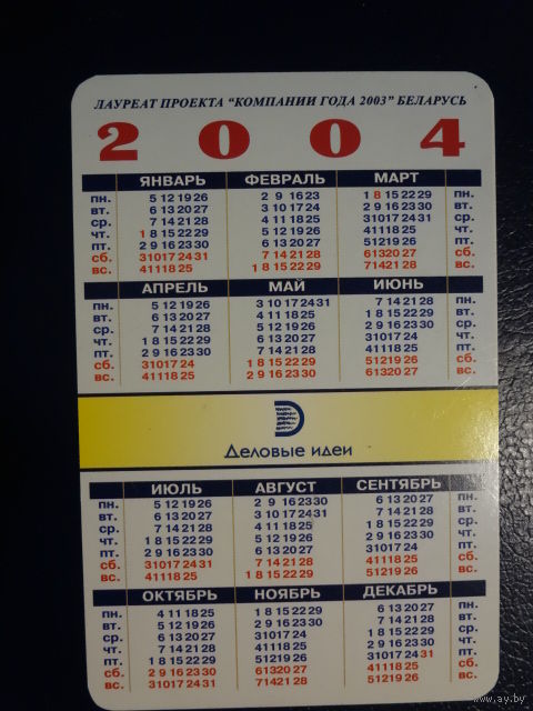 Календарик 2004 г. Информация о ваших товаров и услугах.