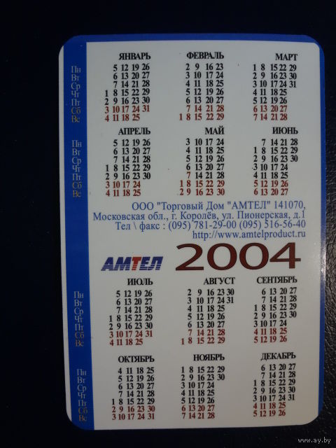 Календарик 2004 г. Курортная серия.